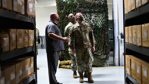 Lt. Col. Russell R. Whitlock, 910th Force Support Squadron commander, listens to remarks during his assumption of command ceremony at Youngstown Air Reserve Station, Ohio, May 3, 2025. The 910th FSS provides support services to the installation during combat training situations and wartime